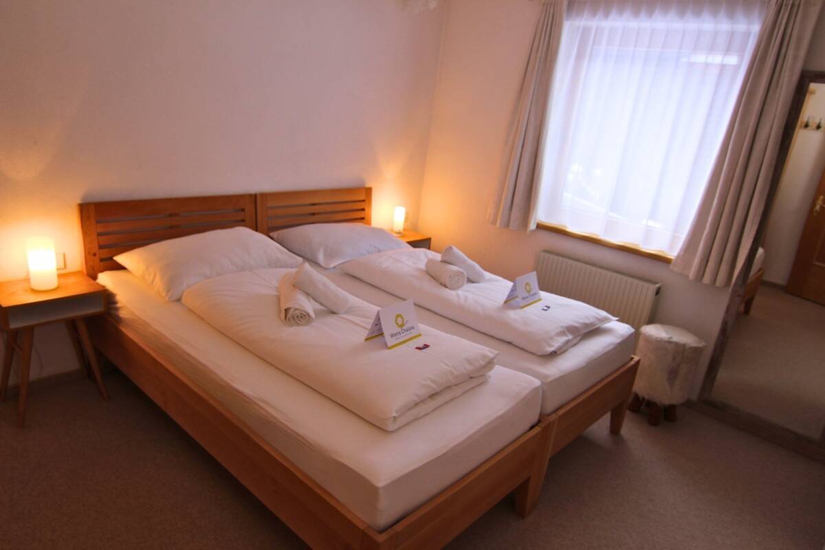 The six bedrooms are located on the first and second floors of the chalet and are spacious, each with its own bathroom for added comfort and privacy. One of the rooms is a triple room, and it is also possible to place an extra bed in another room if desired. The owner has a separate apartment within the chalet with a private entrance, ensuring that you, as a guest, enjoy complete privacy.