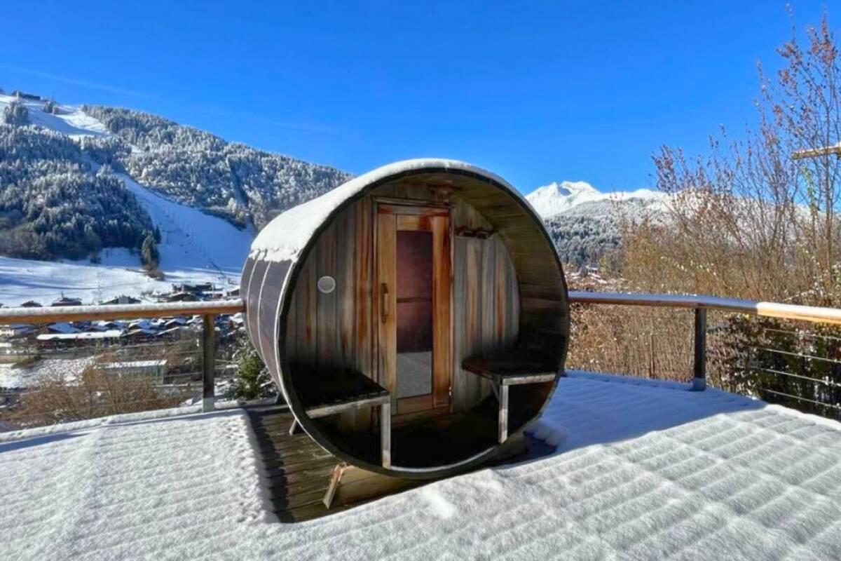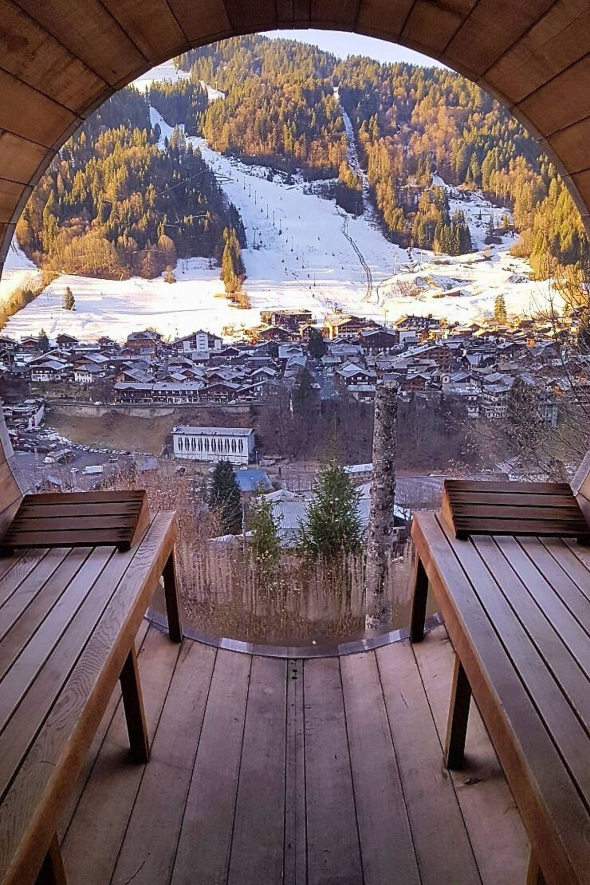 The spacious terrace of chalet Chelmer offers breathtaking views of both Morzine and the vast Portes du Soleil ski area. Here you will find a private sauna with a spectacular glass wall overlooking the village, the valley, and the mountains, as well as a relaxing whirlpool to calm your tired legs.