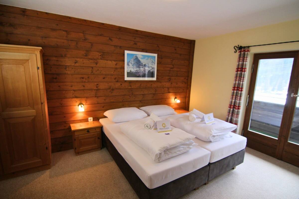 The chalet is spread over four floors. On the third lower floor, you'll find the sauna, where you can unwind after an active day. The second and first lower floors house the nine bedrooms. There are four double rooms with ensuite bathrooms, two triple rooms with ensuite bathrooms, as well as two single rooms and one double room with a shared bathroom.